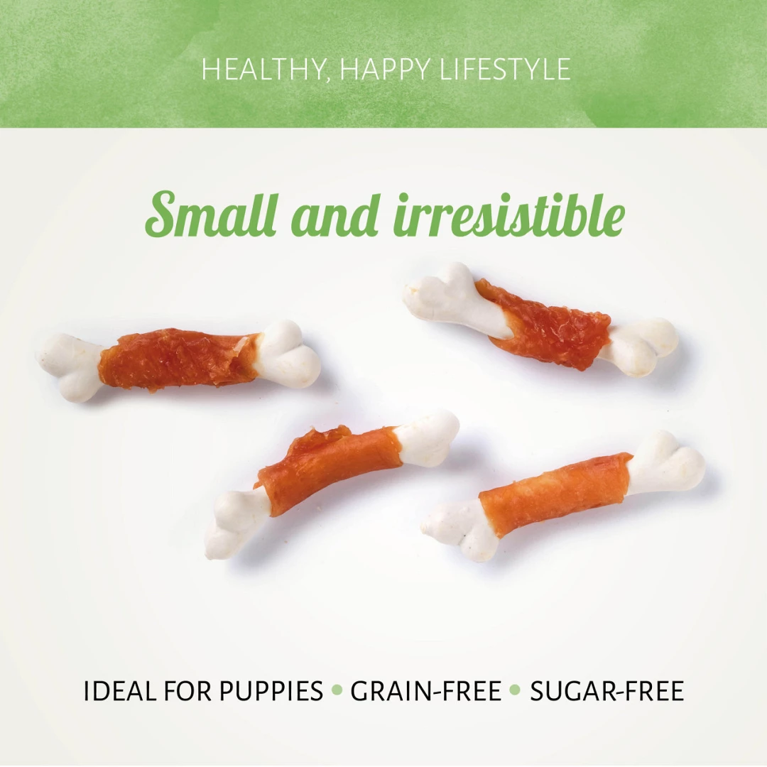 Chicken D’light Calcium bestaat uit een calcium botje met extra veel kippenvlees eromheen gewikkeld.