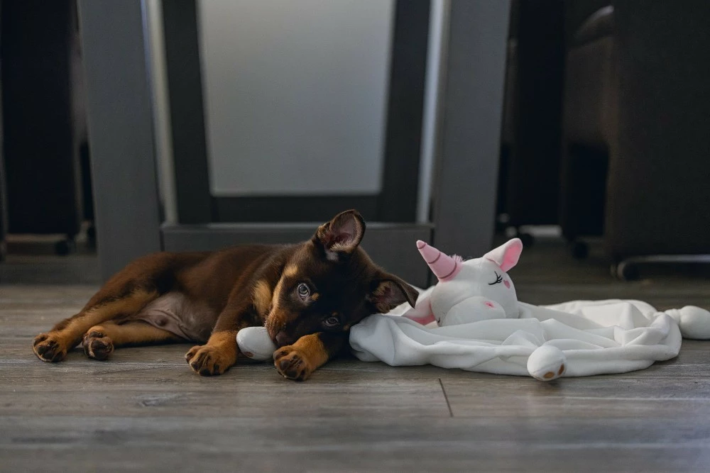 Om jouw pup extra geruststelling te geven met deze knuffel, kun je deze van te voren al in het nest bij de fokker laten leggen. De nestgeur van de broertjes, zusjes en moederhond zal dan in de doek trekken. Wanneer je jouw kleine pup mee naar huis mag nemen, zal de geur in de knuffeldoek extra steun geven. Deze Puppy Knuffeldoek Unicorn zal al snel het favoriete knuffel speeltje van jouw kleintje worden.