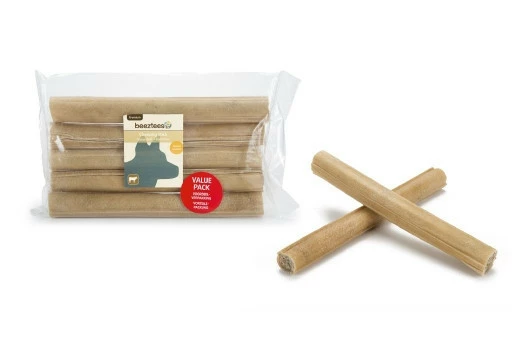 Beeztees kauwstaaf Verpakt per 5 stuks. Voordeelverpakking. Strak gedraaid. Premium Thaise kwaliteit. Een lekker tussendoortje voor uw hond. Extra dik.