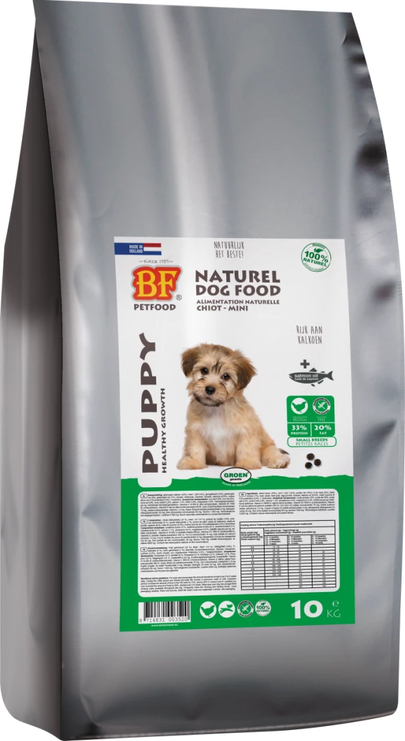 - Een hoogwaardige, volledige, natuurlijke hondenvoeding voor puppy’s en jonge honden van kleine rassen (tot 10 – 12 maanden) en drachtige en/of zogende honden van kleine rassen.