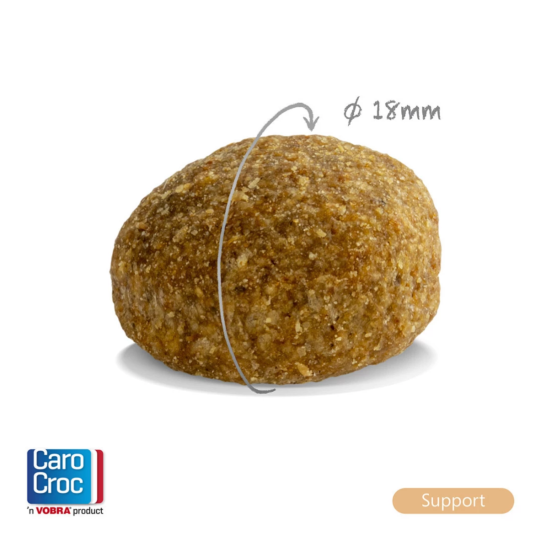 CaroCroc Support is een volledig voer en draagt bij aan het voorkomen van voedselallergieën. CaroCroc Support is zeer smakelijk en bevat alle benodigde bouwstoffen voor instandhouding van spieren, sterk beendergestel, gezond gebit, goed functionerende organen en een glanzende vacht.
