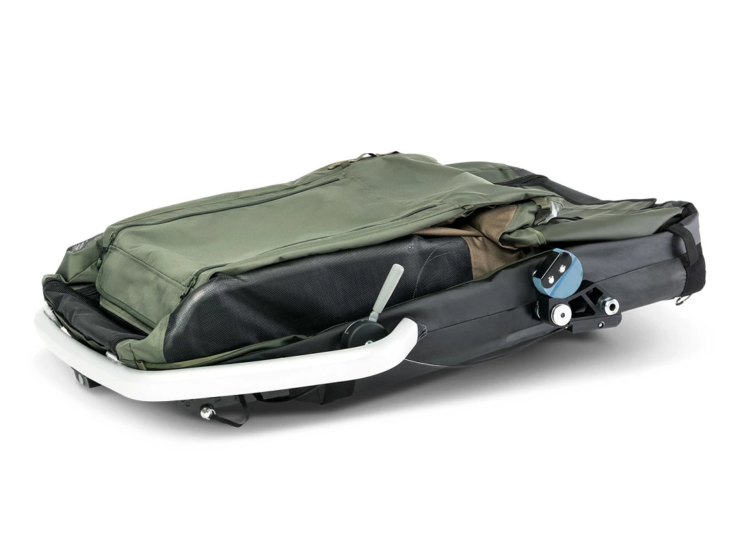 - Met Croozer AirPad vering: de Croozer AirPad-ophanging past zich automatisch aan de belasting aan en absorbeert zowel schokken als trillingen. Het voorkomt ook dat de aanhanger gaat schommelen, wat zorgt voor een stabiele wegligging en zacht rijcomfort.