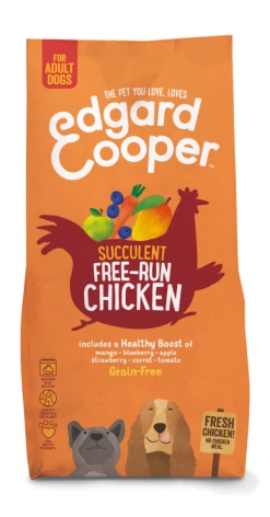 In Edgard & Cooper hondenvoer Adult scharrelkip wordt enkel verse scharrelkip gebruikt en absoluut geen bewerkte, overgare of gedroogde kip of kippenmeel dat moeilijker is voor de buikjes om te verteren. Daarnaast wordt er een supergezonde mix van fruit, groenten en kruiden toegevoegd.
