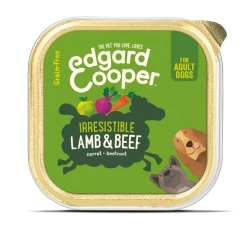 In Edgard & Cooper hondenvoer Adult lam en rund worden heerlijke stukjes lam en rund gebruikt en absoluut geen bewerkt, overgaar of gedroogd lam en rund of meel van rund of lam dat moeilijker is voor de buikjes om te verteren. Daarnaast wordt een supergezonde mix van fruit, groenten en kruiden toegevoegd.