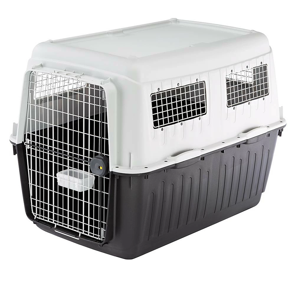 Atlas Professional dragers zijn uitgerust met zijveershaken met veiligheidssloten en een stevige deur, gemaakt van met kunststof bedekt staal, een intrekbare en verlengbare handgreep, een voedertrog voor voedsel of water, zijventilatieroosters voor goede luchtcirculatie, een hygiënische drainagemat en een compartiment voor objecten.