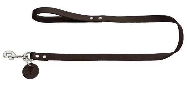 De Hunter rundleder Hondenlijn is van zachte koeienhuid en heeft een bijzonder hoge vetgehalte en natuurlijke bruining. De lijn is bestand tegen hoge trekkrachten en is daarom bijzonder geschikt voor hondensporten. Het leer is niet alleen extreem robuust, maar de hondenriem ligt ook heerlijk soepel in de hand. De reliëf-sleutelhanger toont een gestileerd Indiaas symbool dat doet denken aan de dierlijke oorsprong van het leer.