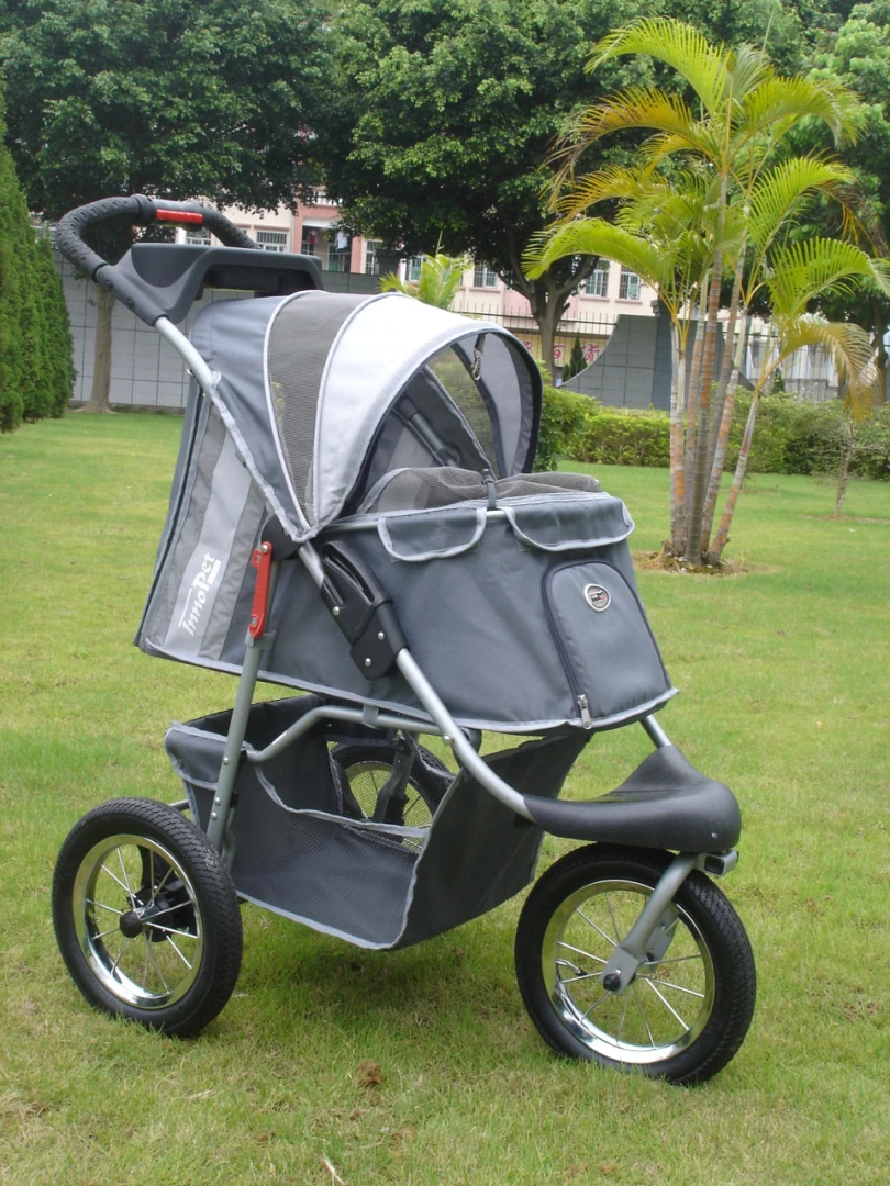 De buggy heeft 12 inch luchtbanden. Het voorwiel is 360 graden draaibaar en fixeerbaar en er is een eenvoudig te bedienen rem op de achterwielen aanwezig. De wielen zijn eenvoudig te (de)monteren. Inclusief heerlijk zacht, uitneembaar matrasje in de carrier, twee aanleglijnen, rubberen grip, bekerhouder en ruime opbergmand.
