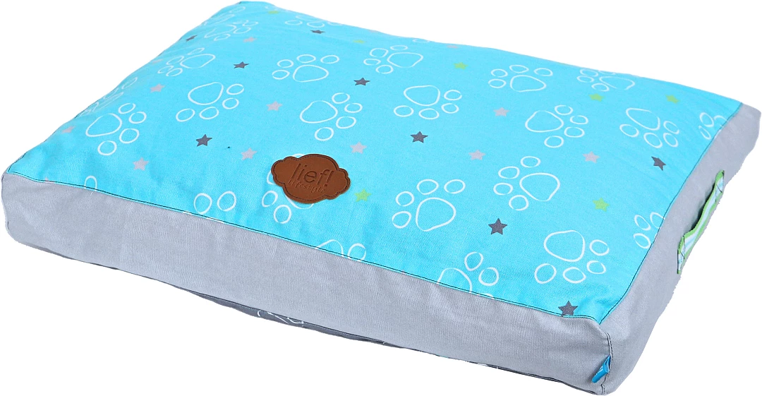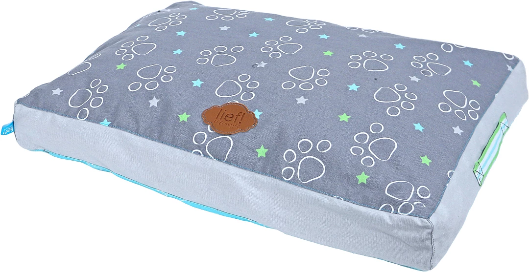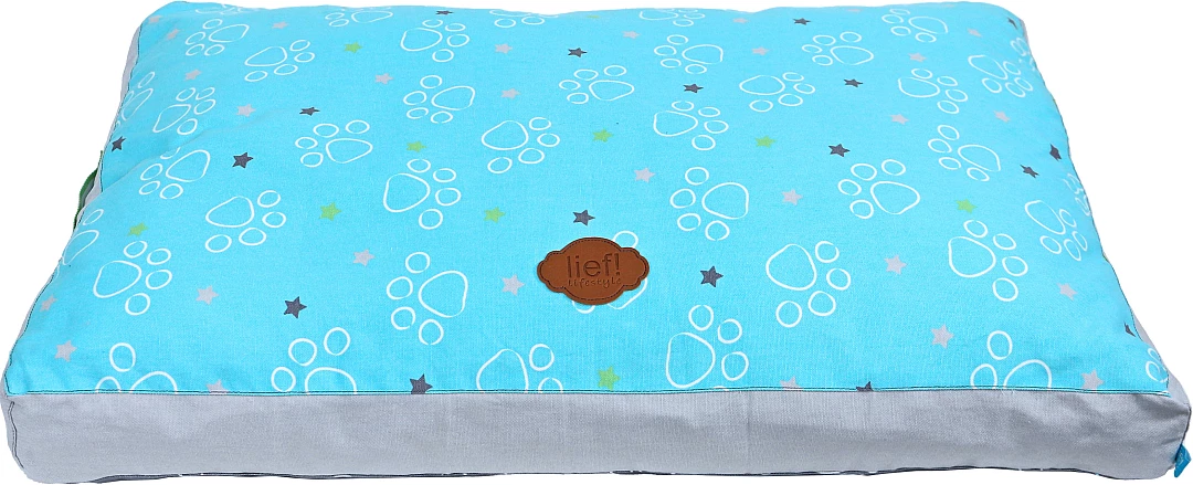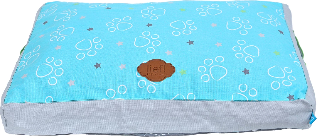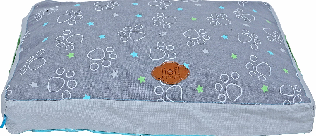lief! lifestyle Boys hondenkussen Lounge 2-zijdig is een ligkussen voor honden, waar ze heerlijk op kunnen liggen. Het kussen is lichtblauw aan de ene kant en donkergrijs aan de andere kant, met een Boys- en pootprint aan beide kanten. De mooie details maken dit kussen helemaal af, zoals de handgrepen aan de zijkant van het kussen.