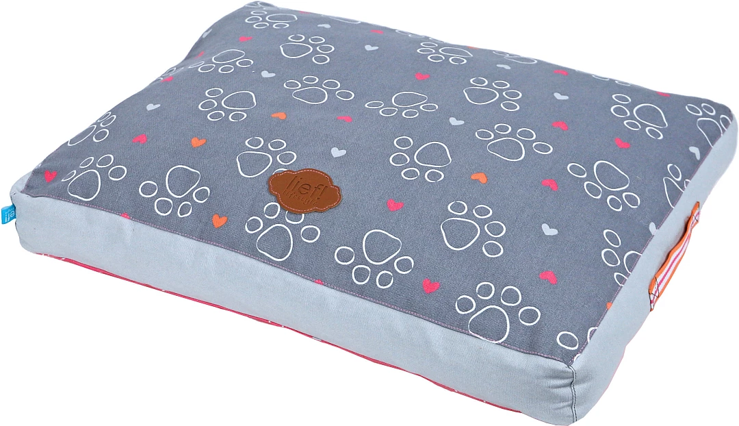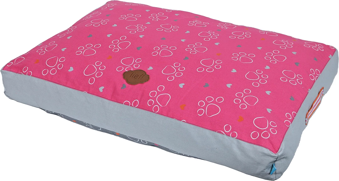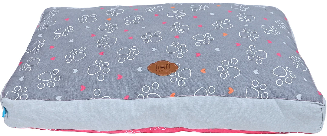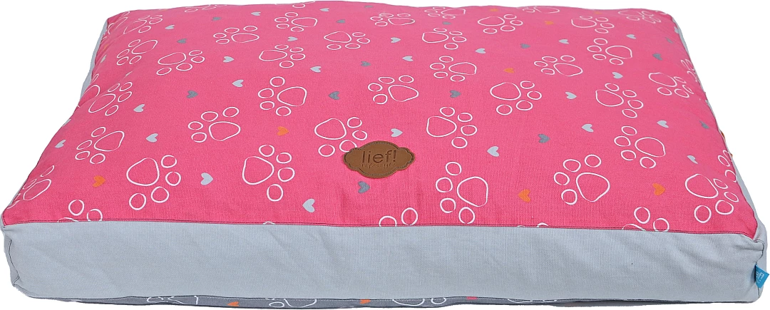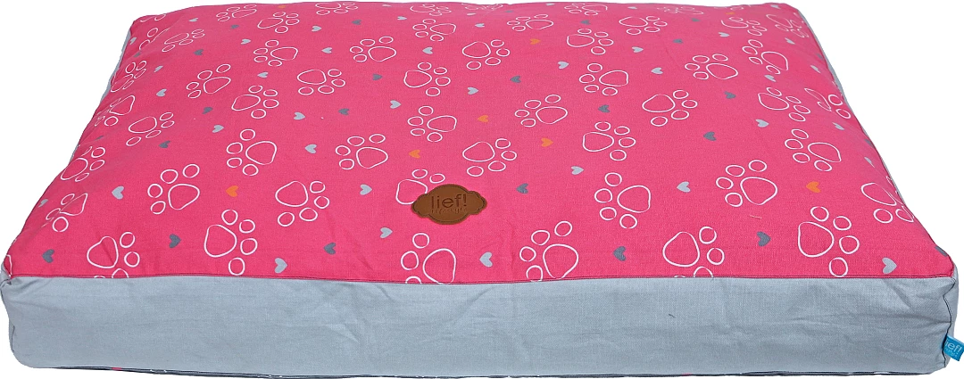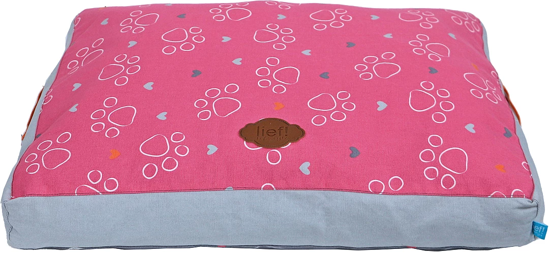 lief! lifestyle Girls hondenkussen Lounge 2-zijdig is een ligkussen voor honden, waar ze heerlijk op kunnen liggen. Het kussen is rozerood aan de ene kant en donkergrijs aan de andere kant, met een Girls- en pootprint aan beide kanten. De mooie details maken dit kussen helemaal af, zoals de handgrepen aan de zijkant van het kussen.