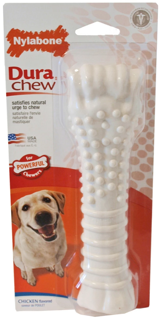 Het NylaBone Dura Chew Souper Bot kip is geschikt voor volwassen honden tot ± 30 kg met een flinke kauwbehoefte. Deze kluif is bijna onverwoestbaar en zal bij intensief kauwen langzaam slijten.