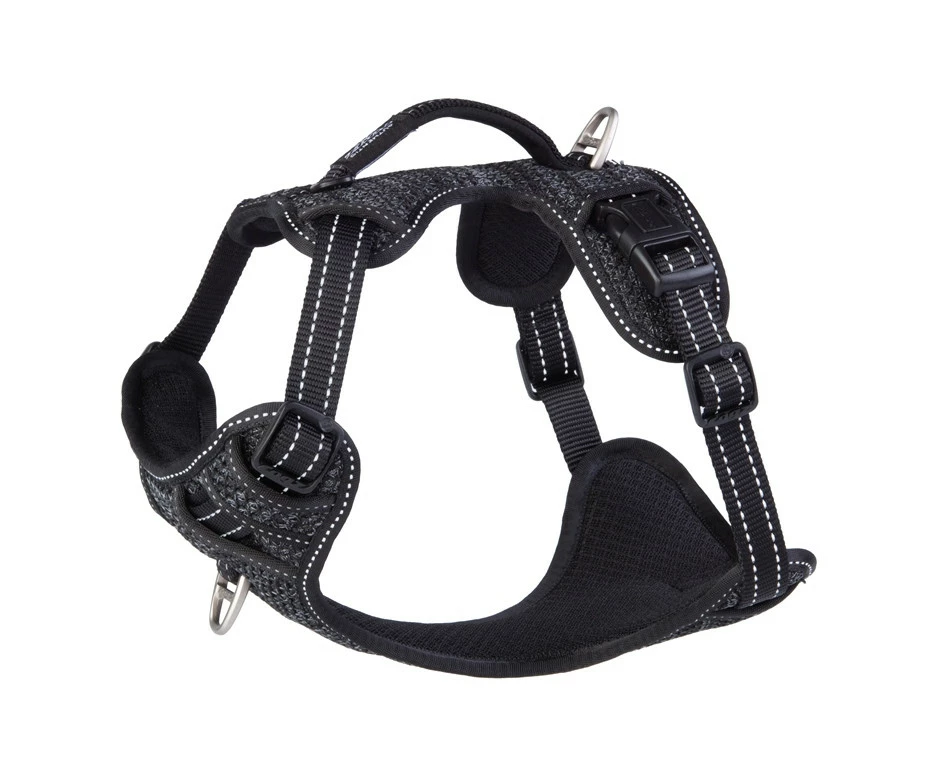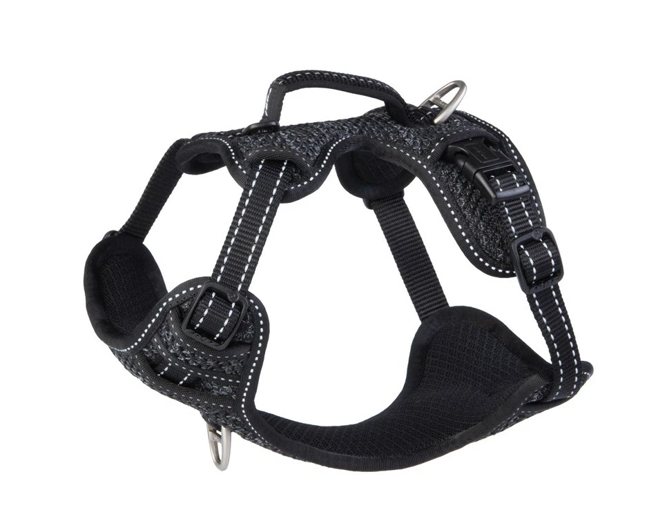 Met een gevoerde borst en rugplaat voor extra ondersteuning. Op de rugplaat zit een support handvat waarmee je je hond makkelijk ondersteuning kunt bieden bij het nemen van obstakels.