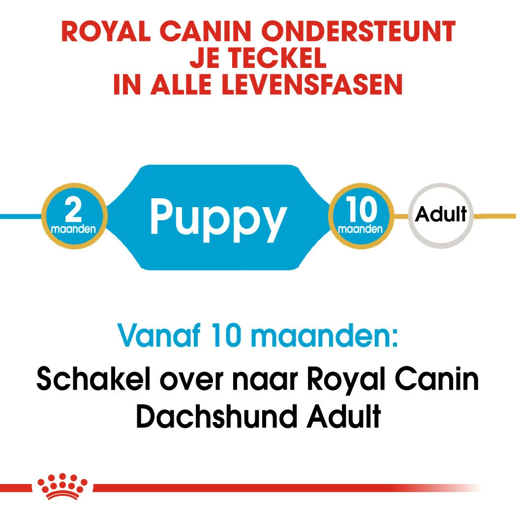 Royal Canin Dachshund Puppy is een rasspecifiek hondenvoer voor de Dashond (Teckel) pups van 2 tot 10 maanden.