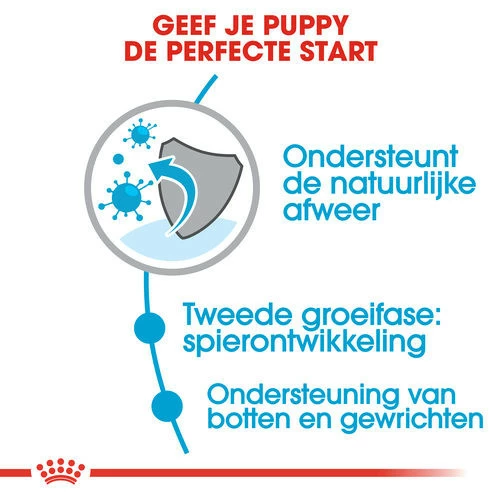 Royal Canin Giant Junior is een voeding voor pups van zeer grote rassen (volwassen gewicht vanaf 45 kg) van 8 tot 18-24 maanden oud.