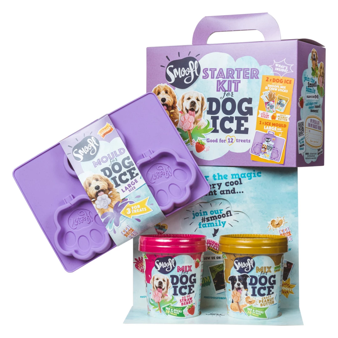Met de Smoofl Starterkit Large kun je twee smaken Smoofl ijsjesmix voor grote honden (>25 kg) uitproberen. De kit is geschikt voor 12 ijsjes in totaal! De kit is ook perfect om cadeau te geven.