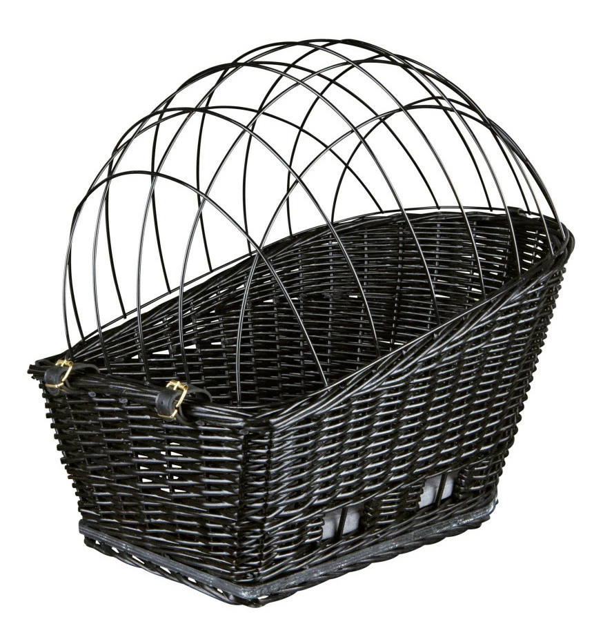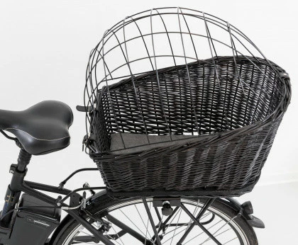 Met de TRIXIE fietsmand met rooster voor bagagedrager kunnen jij en je hond samen overal op pad. Deze mooie wilgentenen fietsmand heeft een draadkap, zodat jouw hond niet uit het mandje kan springen tijdens het fietsen.