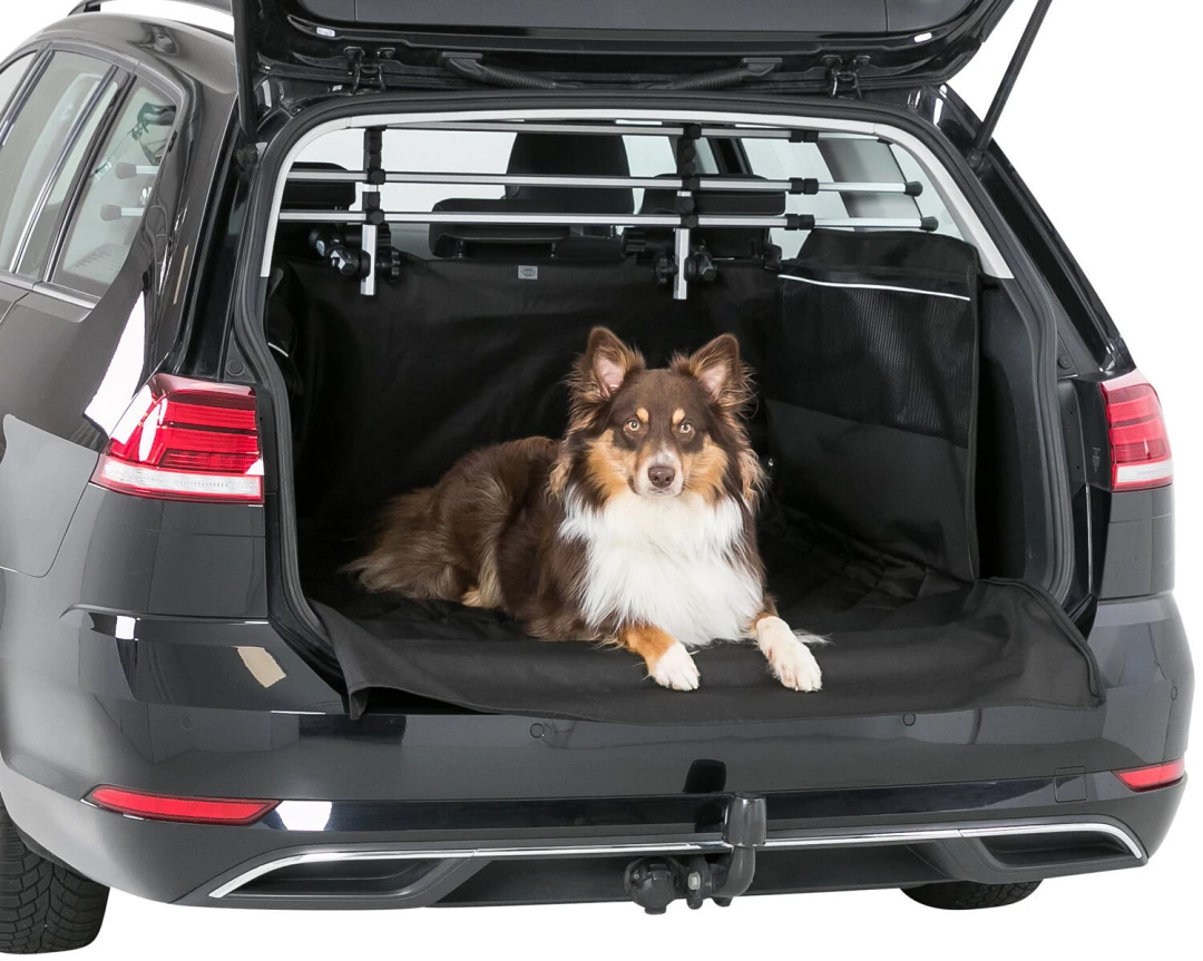 De TRIXIE kofferbakdeken heeft hoge zijkanten die de kofferbakbekleding beschermen. De deken wordt bevestigd aan de hoofdsteunen met gordels en aan de zijkanten met klittenband.